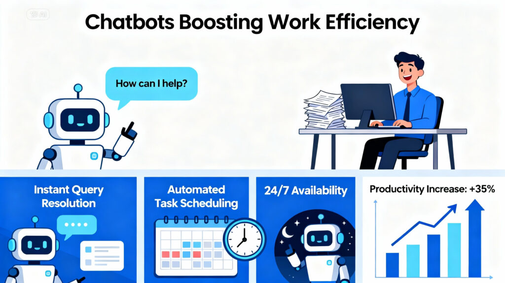 まず、業務効率化の観点では、従来人間が対応していた定型的な質問(営業時間、料金、配送状況など)をチャットボットが即時回答することで、担当者はより高度な業務に集中できます。これにより、人的リソースの最適化が可能となり、コスト削減にも直結します。